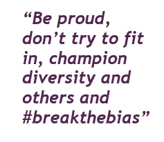 As an illustration, people made comments like “I wish I could tell my younger self, the girl who hid her disability and tried to blend in, to be proud of who she is. But I can tell it to myself now. Be proud, don’t try to fit in, champion diversity and others and #breakthebias”.